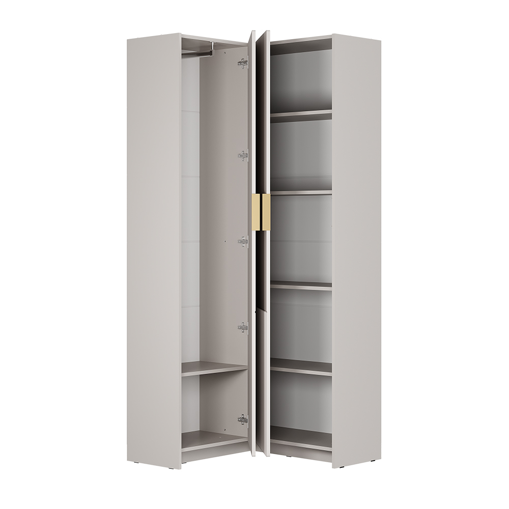 Модель: Шкаф угловойРазмер (ШхВхГ): 863х2000х860мм.Цвета:Кашемир/МДФ айриш