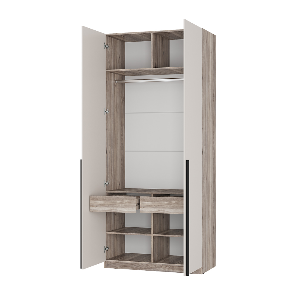 Модель: Шкаф 2 ствРазмер (ШхВхГ): 1000х2293х510мм.Цвета:Кашемир/Дуб смоки